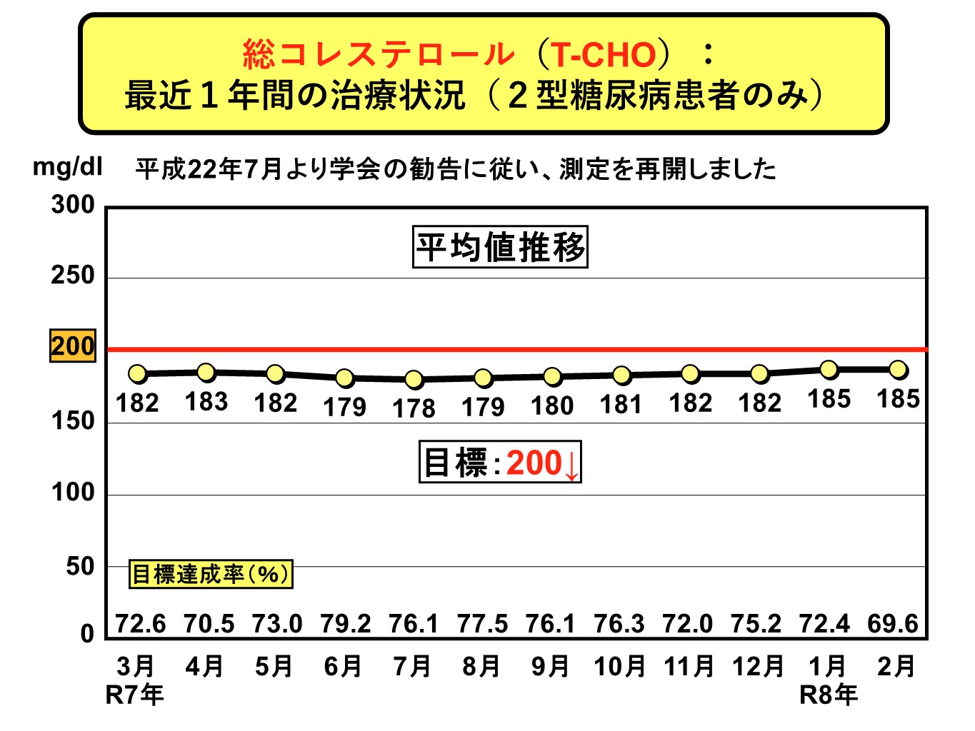 最近1年間のT-CHO平均値推移